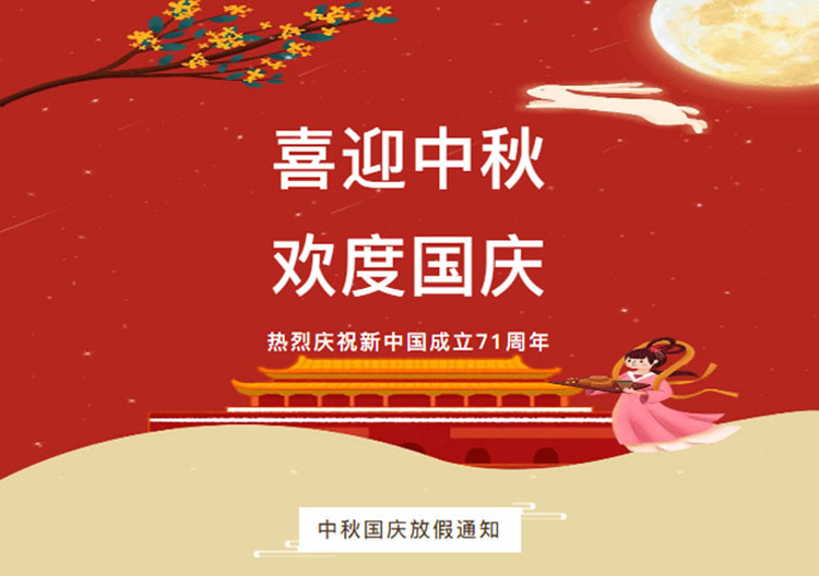 尊敬的各位家人:您好!衷心感謝你們一直以來(lái)對我公司工作的支持與幫助,根據國務(wù)院關(guān)于中秋、國慶節放假的安排,為了讓大家度過(guò)一個(gè)充實(shí)、平安的假期,現把放假時(shí)間及溫馨提示通知如下!愿小長(cháng)假平安相隨,快樂(lè )相伴!