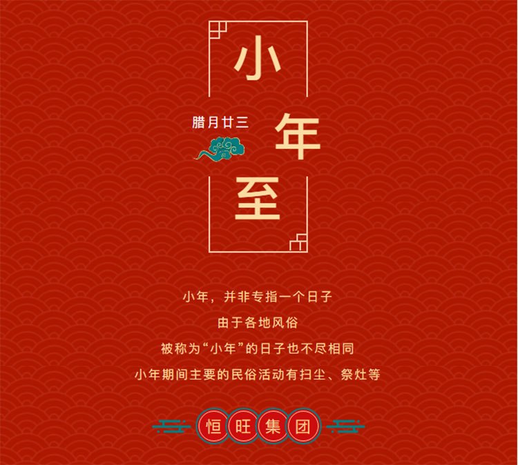 恒旺集團攜全體員工恭祝全國人民:小年快樂(lè )、身體健康、財運旺盛、闔家幸福、萬(wàn)事如意、心想事成!