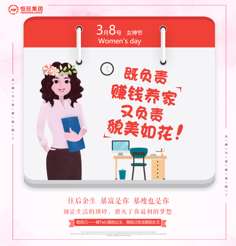 陽(yáng)春三月,草長(cháng)鶯飛,在這生機盎然的季節里,我們迎來(lái)了2021年的三八婦女節,在這個(gè)特殊的日子里,恒旺集團攜全體員工,祝廣大的女性同胞們節日快樂(lè )!