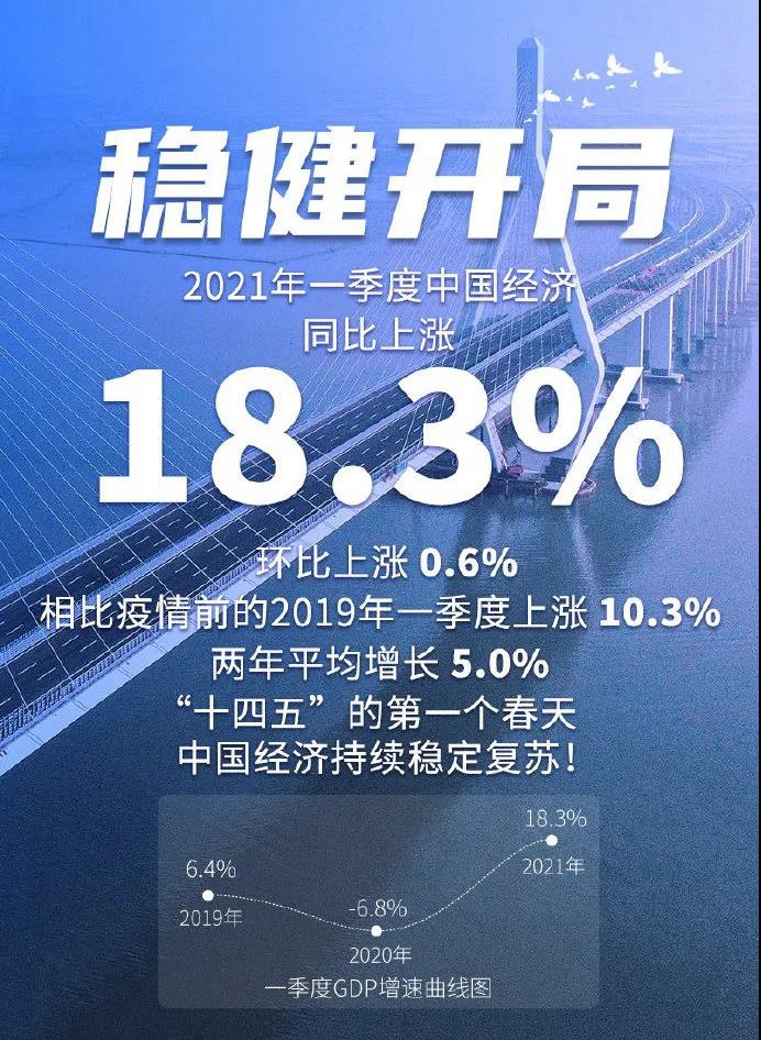 4月16日,國家統計局發(fā)布數據,初步核算,一季度國內生產(chǎn)總值249310億元,同比上漲18.3%,環(huán)比上漲0.6%,相比2019年上漲10.3%,兩年平均增長(cháng)5.0%,實(shí)現穩健開(kāi)局。